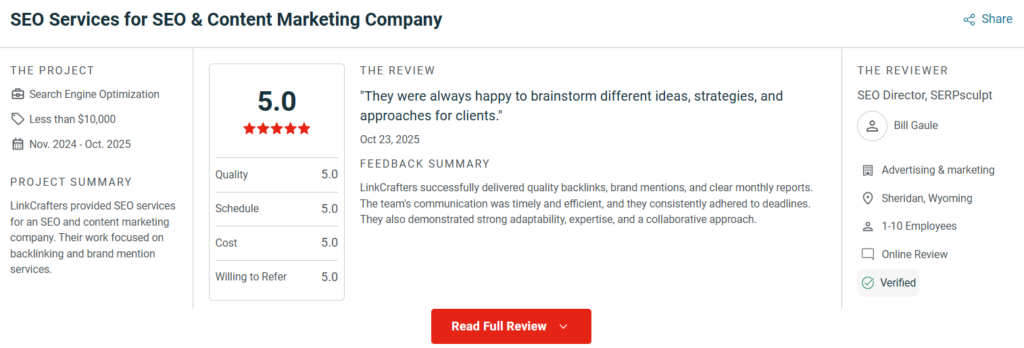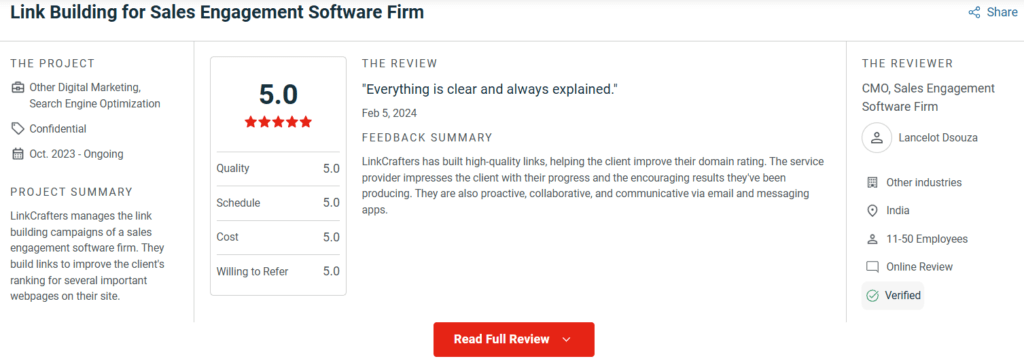 For more reviews, you can visit: https://clutch.co/profile/linkcrafters#reviews