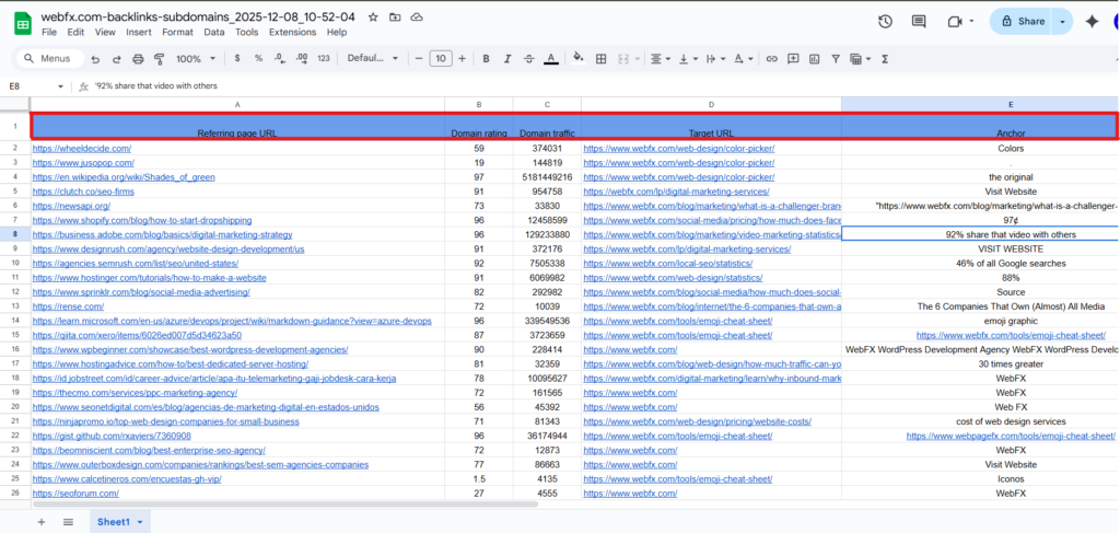 Export all the low-quality links shown on Ahrefs to a Google sheet.