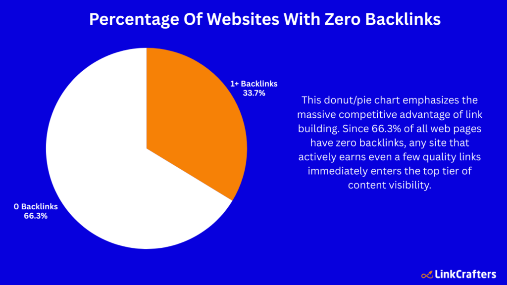 - 66.31% of web pages have zero backlinks, signaling huge competitive advantage for sites that do build links.