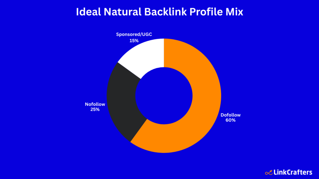 - Natural backlink profiles from competitive sites tend to have 70–80% dofollow links and 20–30% nofollow links, which aligns with what many top-ranking sites actually look like in practice.
