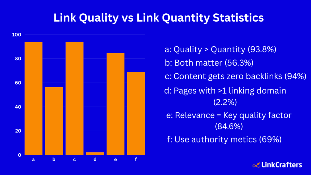 - 93.8% of link builders say link quality beats link quantity, showing overwhelming agreement among SEO pros.