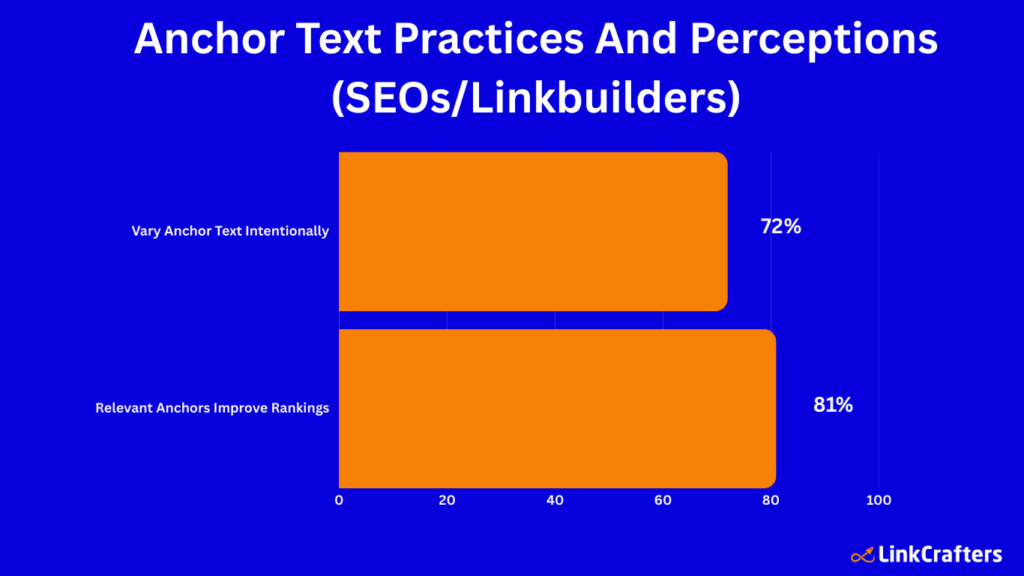 - Around 72% of link builders intentionally vary anchor text to maintain balanced, natural link profiles.