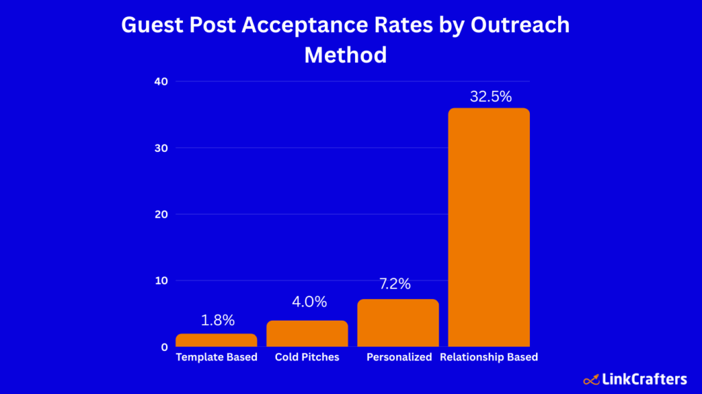 - Template-based pitches perform poorly: Only 1.8% acceptance for generic outreach without personalization.