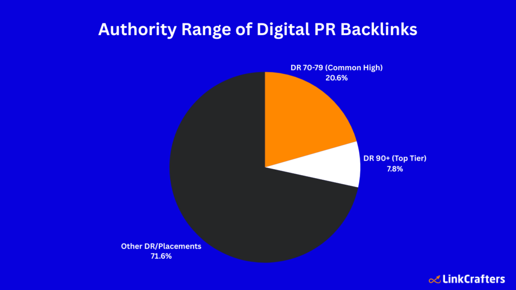 - About 7.8% of Digital PR backlinks came from extremely high authority sites (DR 90+), giving campaigns access to top-tier editorial placements.