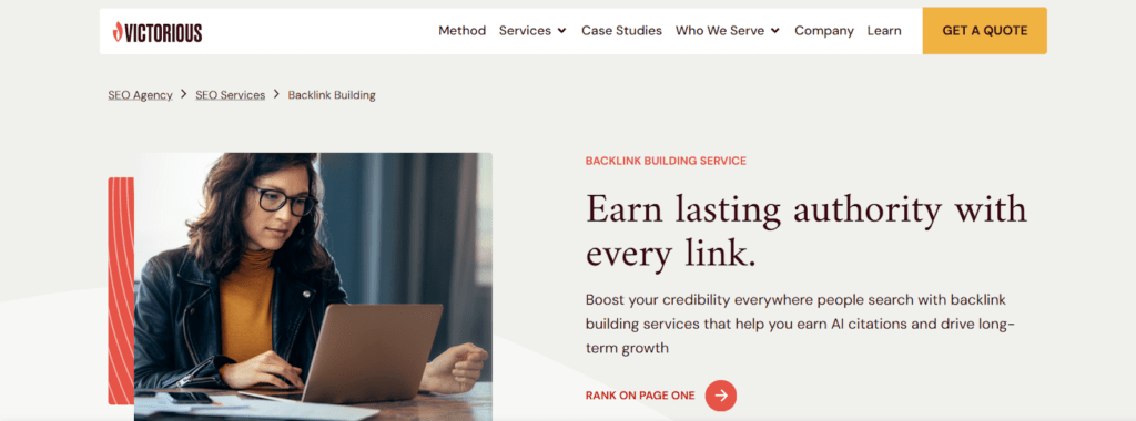 Victorious is an SEO agency that offers a range of search engine optimization services, including link building as part of broader SEO campaigns. Their link building approach focuses on earning relevant, high-quality backlinks that support organic search visibility, usually integrated with keyword strategy, content, and technical SEO work rather than as a standalone product. Victorious works with mid-market and enterprise brands across industries and tailors its SEO strategies to each client’s goals and competitive landscape.