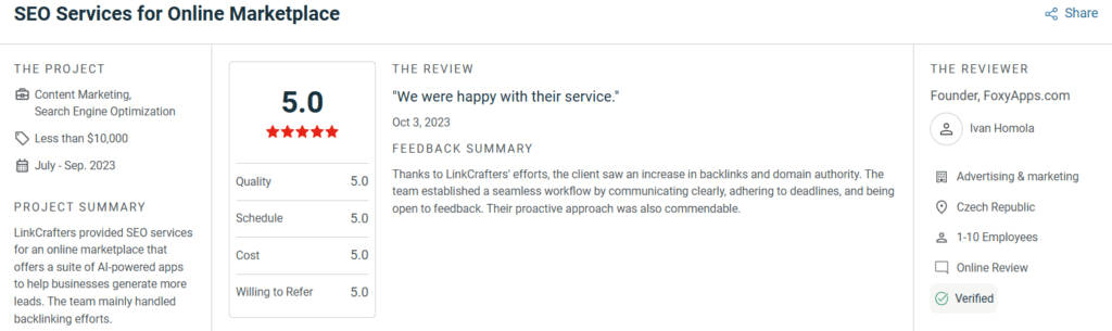 Here you can read their reviews: https://clutch.co/profile/linkcrafters#reviews